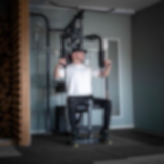 Mycket robust hemmagym med extra grova ramrör, kullagrade trissor och hela 100 kg vikter. Numera 2,0 mm godstjocklek för bättre stadga samt kullagrade rulltrissor.