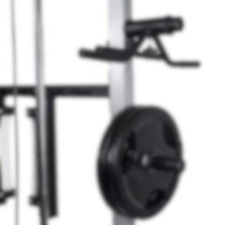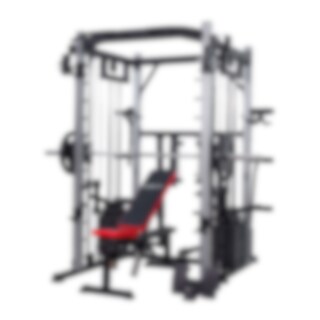 Smith Cage Multipress kombinerar flera träningsfunktioner i ett och samma redskap. Den inbyggda Smithmaskinen låter dig träna tungt med extra stabilitet och säkerhet – stången löper längs en vertikal skena vilket minskar risken för skador och gör att du kan fokusera fullt ut på tekniken och muskelkontakten.