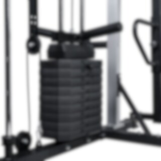 Med en robust stålram på 2 mm och två integrerade viktkassetter på 50 kg vardera får du ett slitstarkt och kraftfullt hemmagym som står stadigt även under tuffa pass. Trots sin funktionalitet har den en relativt kompakt storlek som gör att den passar i de flesta hem.