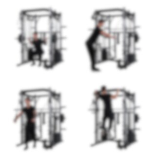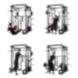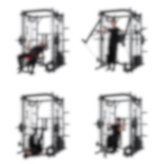 Du kan träna allt från bröst, axlar och rygg till ben, armar och bål. Exempelvis kan du köra bänkpress (med olympisk stång), kabeldrag för bröstet, pull-ups med flera grepp, sittande rodd, benböj med Smithstång och kabelövningar för ben och rumpa. Maskinen erbjuder även många möjligheter för biceps- och tricepsträning samt olika bålövningar som cable crunches och benlyft.